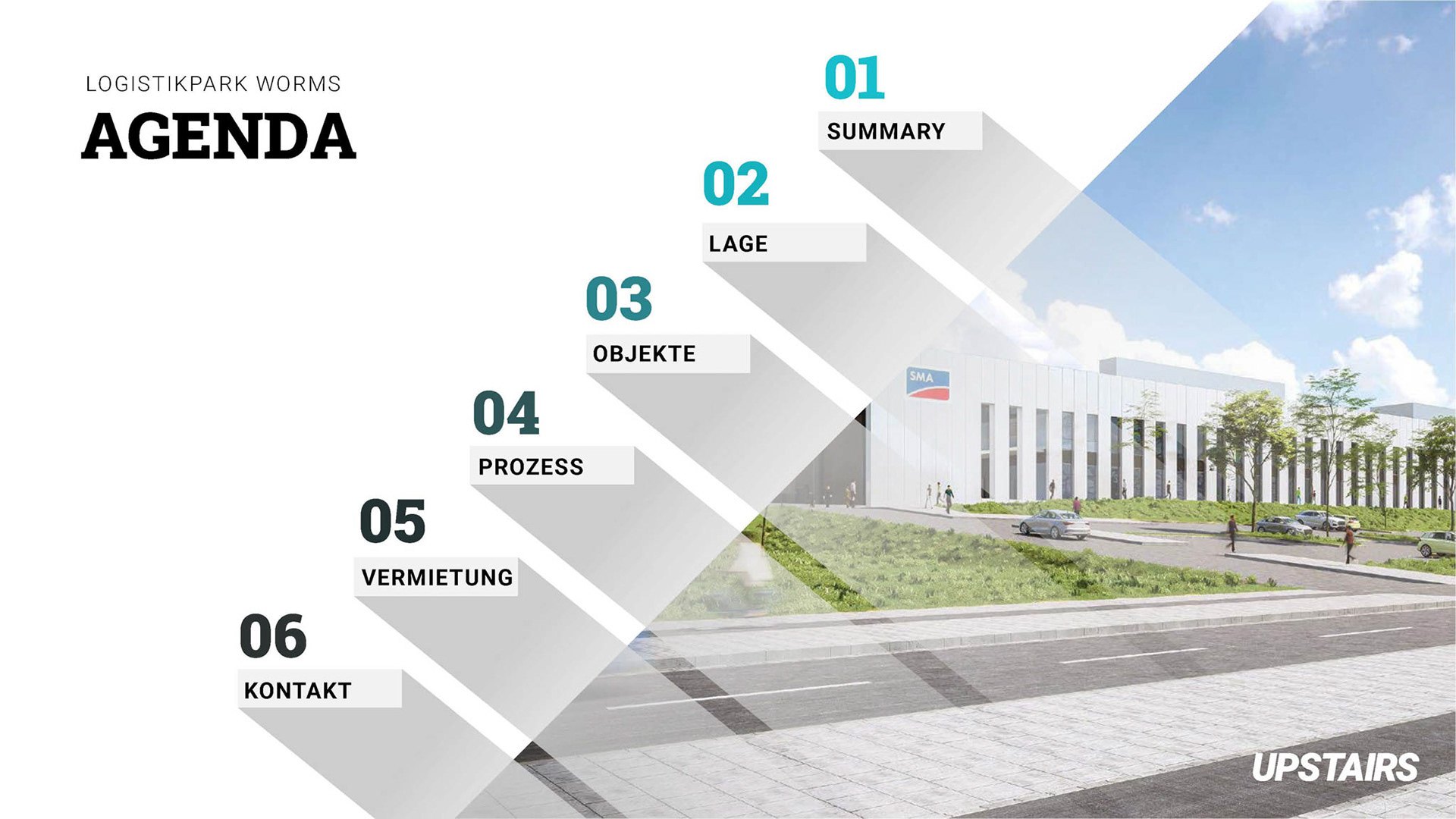 UPSTAIRS – unter diesem neuen Vermarktungsnamen wurde das Lager-Asset aus Worms positioniert. In diesem Zusammenhang war es meine Aufgabe, ein neues Designkonzept für die Präsentation des Objekts zu entwickeln. Aus Datenschutzgründen wurden die Texte sowie sensible Daten ersetzt.