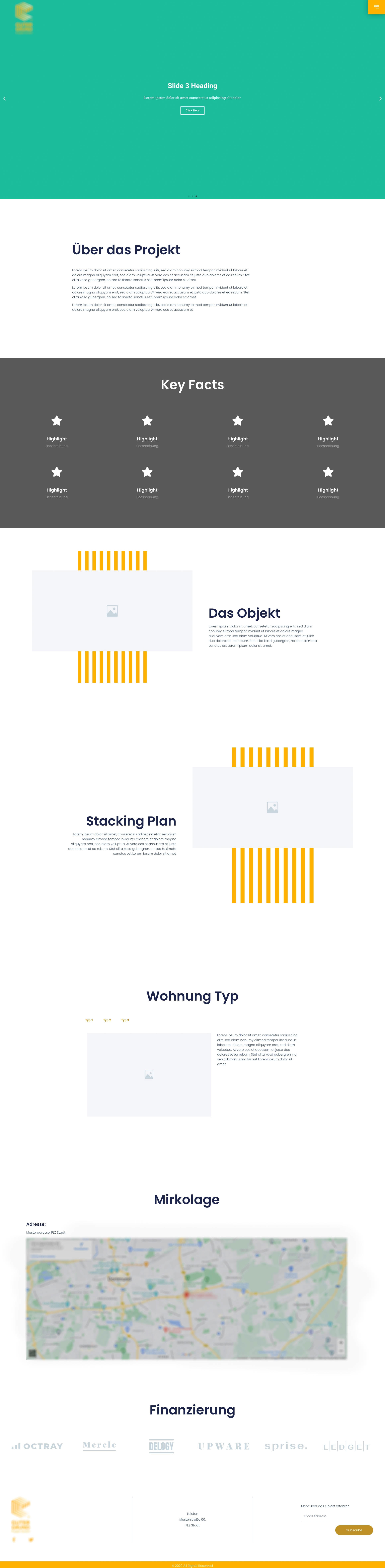 Bei diesem Projekt habe ich eine Landing Page für den Neubau von Reihenhäusern erstellt. Aus Datenschutzgründen wurden die Texte sowie sensible Daten ersetzt.